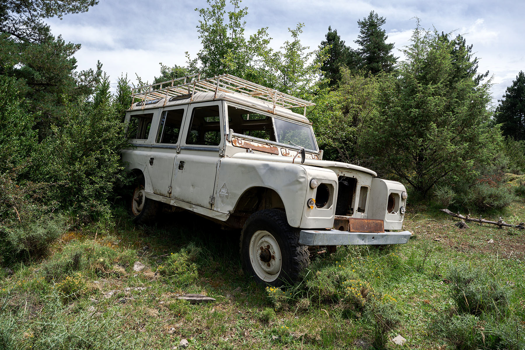 La nature reprend peu à peu ses droits, lichen sur les capots, herbe à travers les roues,